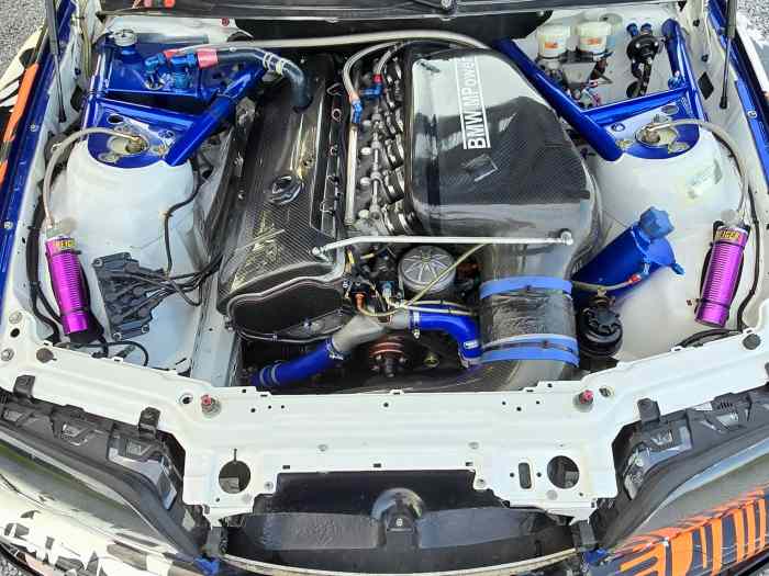 Moteur S54B32 préparé par KMS Kronenburg avec une puissance impressionnante de 421 ch et 422 Nm. Cartographie vérifiée cette année au banc avec seulement 2100 km au compteur et des révisions effectuées à 3500 km. Test de compression effectué et étanchéité OK.