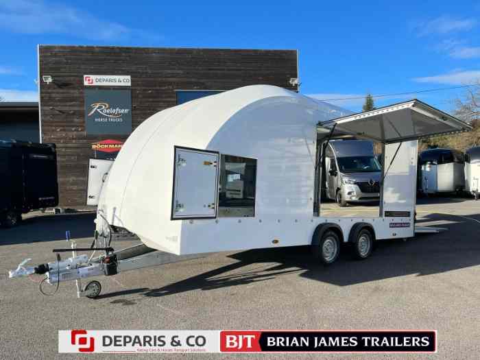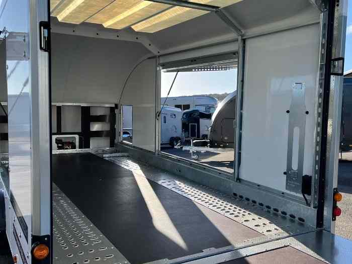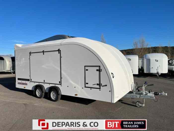 À ne pas manquer : la nouvelle remorque porte voiture fermé de la gamme BRIAN JAMES TRAILER, idéale pour le transport de vos voitures de rallyes, anciennes ou de collection, ainsi que de véhicules sportifs tels que Porsche, Ferrari, et bien d’autres !