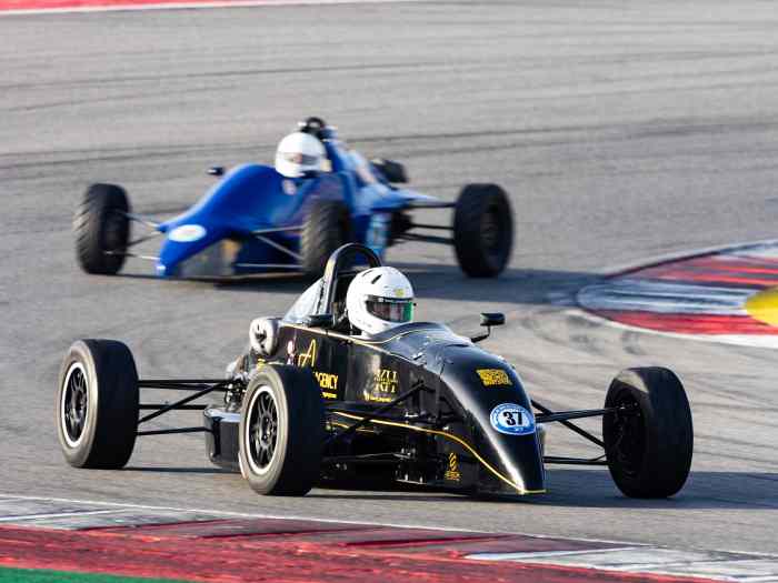 Cette voiture est complète avec moteur et boîte de vitesses Hewland LD200. Elle est équipée de jauges de barre et de température. Tous les équipements sont certifiés FIA, y compris les ceintures (Homologation FIA 8853-2016) et l’extincteur, qui sont encore valables.
