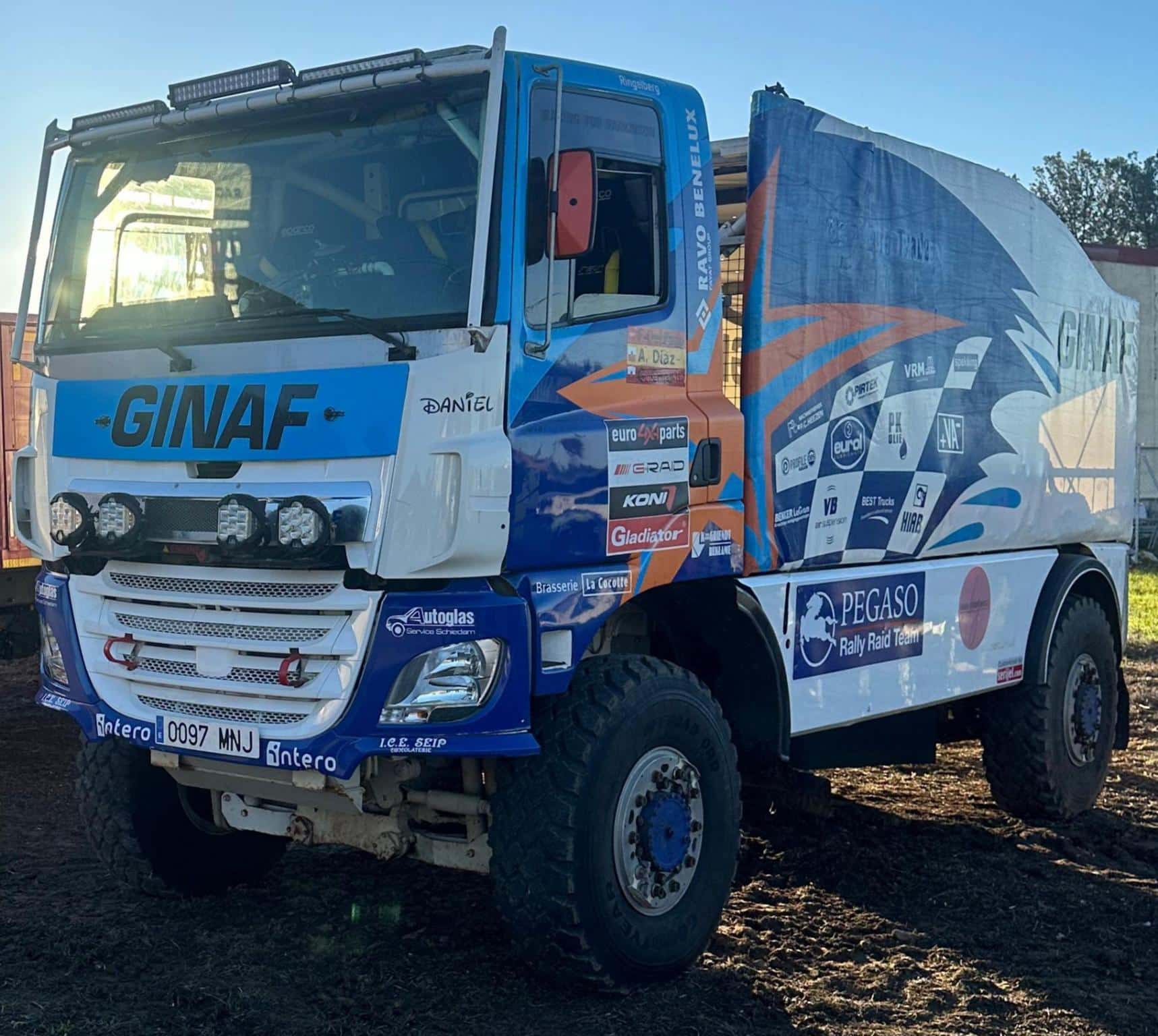 Pour les longues distances, il dispose de deux réservoirs de diesel de 400 l, vous permettant d’aller loin sans souci. De plus, une caisse tubulaire en aluminium avec couverture en toile protège votre équipement. Avec le Ginaf x2222 Dakar, êtes prêt pour les plus grands défis.