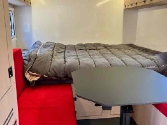 Sous le capot, vous trouverez une batterie performante de 150/24 Amp, ainsi qu’un frigo de 85 L accompagné d’une induction au gasoil, parfait pour conserver vos aliments. Le modèle dispose d’un grand lit et d’une dinette transformable pour un confort maximal. Pour garantir un système de climatisation efficace, ce camping-car est doté d’une climatisation WEBASTO.