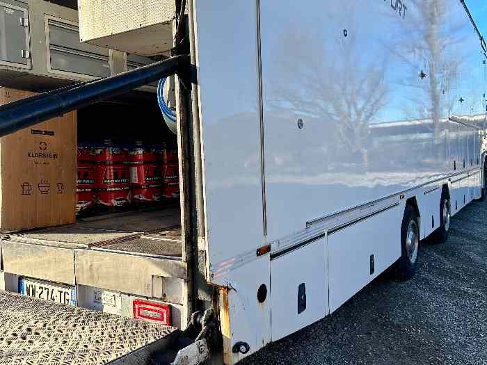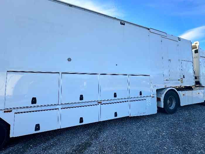 Découvrez notre semi remorque avec tracteur Iveco 1996, idéal pour atelier et export. Capacité de 2 véhicules, équipée de divers aménagements pratiques. Prix 27500 € HT.
