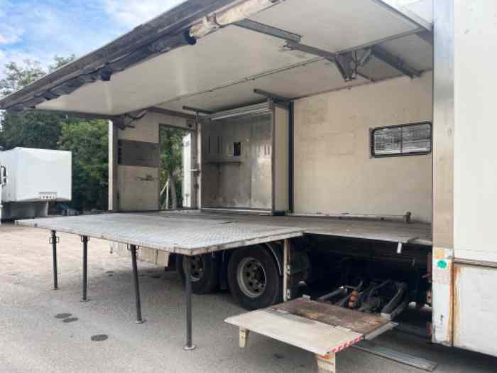 Elle dispose d’une ouverture hydraulique latérale droite mesurant 6,45 m par 2,20 m et d’une plate-forme de 1,95 m par 5,05 m qui fonctionne parfaitement.