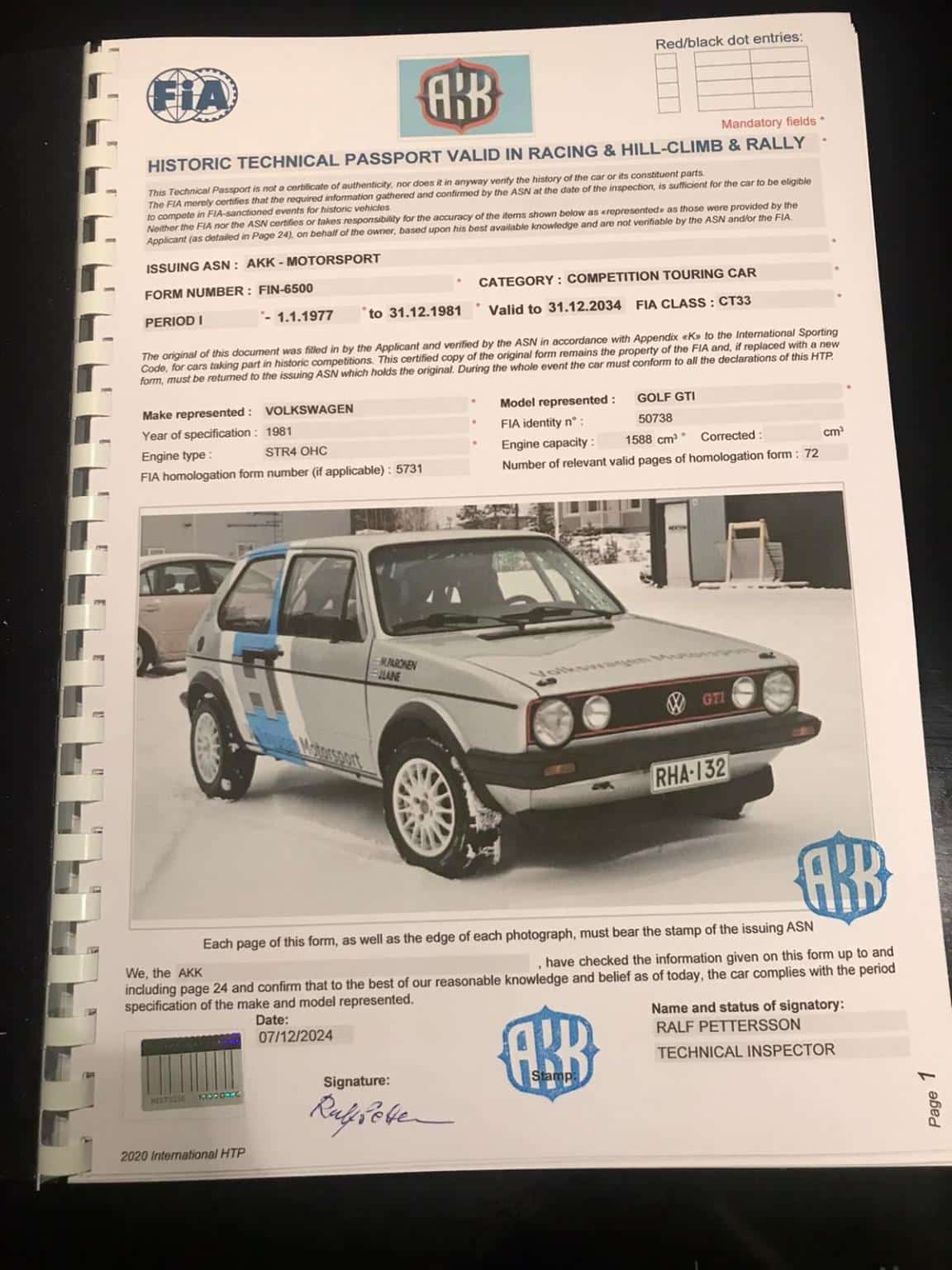 – Passeport Technique Historique (HTP) valide jusqu’au 31.12.2034.